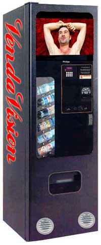 What is a VendaVision? The concept is as simple as capitalism itself. Insert a dollar to watch an independently produced art movie and get an ice cold pop absolutely free! What is an art movie? I refuse to bore everyone with the tired video / film debate. If the image moves it's a movie. It's art because I curated it and I'm the bitch curator because I own the VendaVision machines. Does the artist get paid? Yes. The artist gets 25 cents every time their movie vends. Does the landlord get paid? No. Vendavision is the first time in history that the artists get paid and the landlords are happy with applause alone. It also looks good on the landlords' resumes. Aren't you afraid a certain cola company will attack with high power lawyers that claim they own the color red and that hideous font? Bring it on. How do I get my movie on a VendaVision? You have to submit to me and cross your fingers. If I fancy your movie should be in a program, it's in. Can you use a donation of a working pop machine / computer / monitor? No. I am not making any new